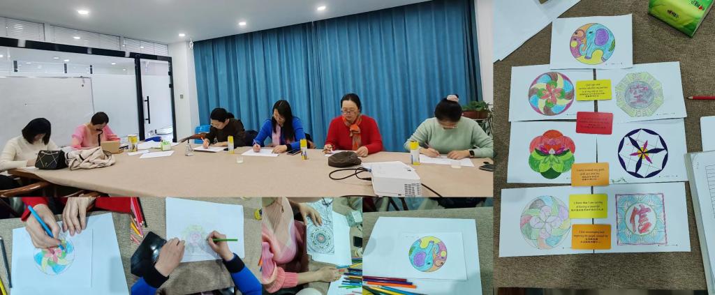 的女教职工在大学生心理健康中心教师赵丹凤老师的指导下,完成了虚拟过山体验、舞动体验、曼陀罗绘画、心灵分享四项活动。