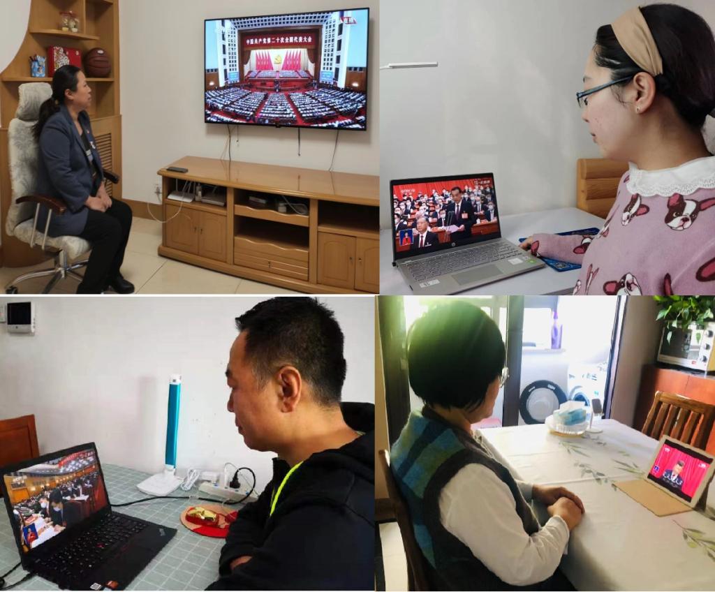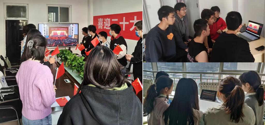 会议室,院党委书记罗建国、党委副书记史瑞根与标杆党支部的全体师生党员一同收看了党的二十大开幕会直播盛况。全院各班级把收看党的二十大开幕会直播作为重要的思想政治教育契机,在辅导员、班主任老师的带领下,同学们以宿舍为小组在宿舍集中收看直播实况,并在直播结束后展开热烈讨论,热议习近平总书记代表十九届中央委员会向大会所作的报告,畅谈了他们激动的心情和催人奋进的感想。因疫情阻隔暂未返校的教职工居家认真收看了党的二十大开幕会直播,纷纷以激动的心情向大发彩票平台
