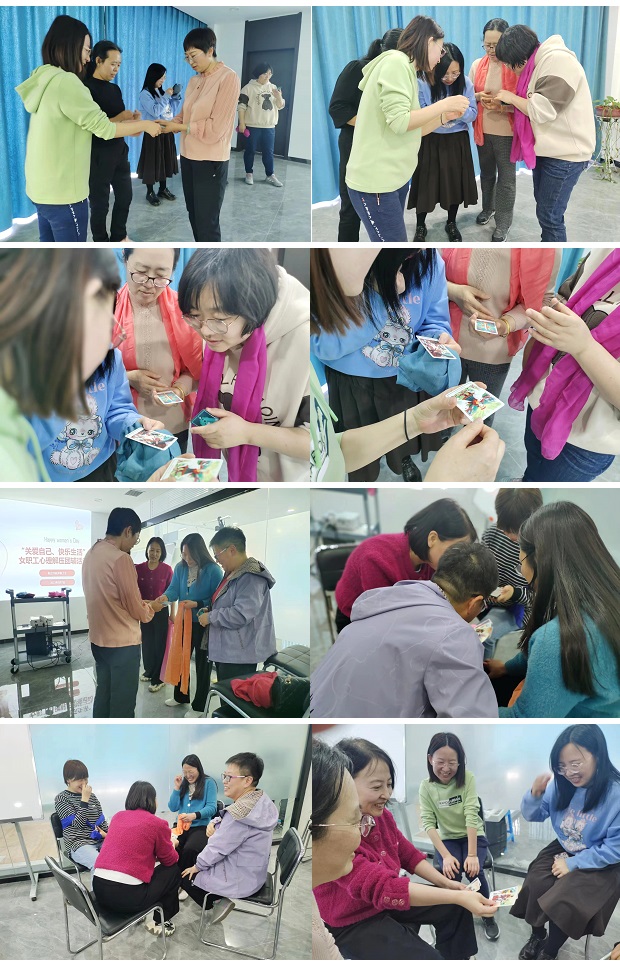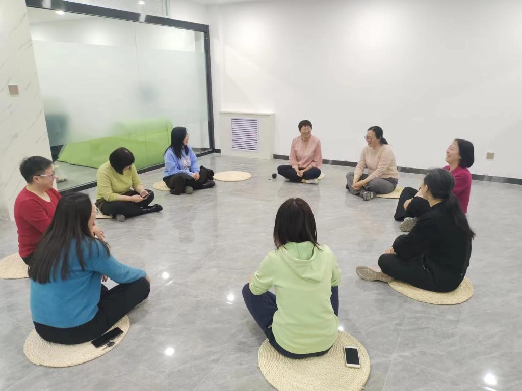 10名女职工员参加了此次活动,在大学生心理健康中心教师赵丹凤老师的指导下,完成了破冰游戏、心理沙盘、冥想放松、心灵分享四项活动。