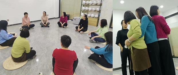 然后在冥想室大家进行了心灵分享,每个人依次分享了自己生活的高兴处、难处、并让大家自己说是不是“爱自己”,大家在培养孩子问题和家庭问题上产生了很强的共鸣,并通过大家扮演家庭成员的方式让老师们面对真实的自己,希望大家能按照自己真实的感受去做事。
