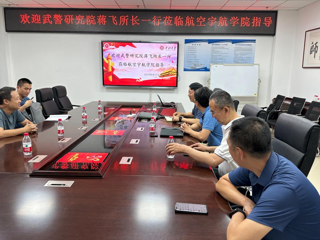 师资力量、科研成果、成果转化、教育教学以及青年教师的成长等。接着武警研究院蒋飞所长介绍了武警研究院的筹备、建设、人才需求、技术交流等方面的内容。接着双方就青年教师和学生培养、技术与项目交流、毕业生输送、实验室等资源共建共享等工作进行了深度交流和沟通。