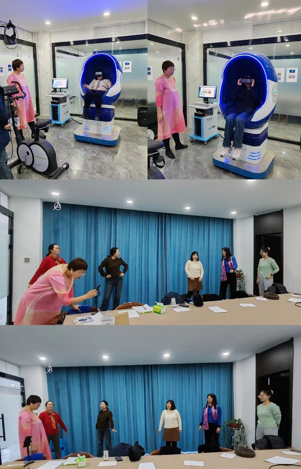的女教职工在大学生心理健康中心教师赵丹凤老师的指导下,完成了虚拟过山体验、舞动体验、曼陀罗绘画、心灵分享四项活动。