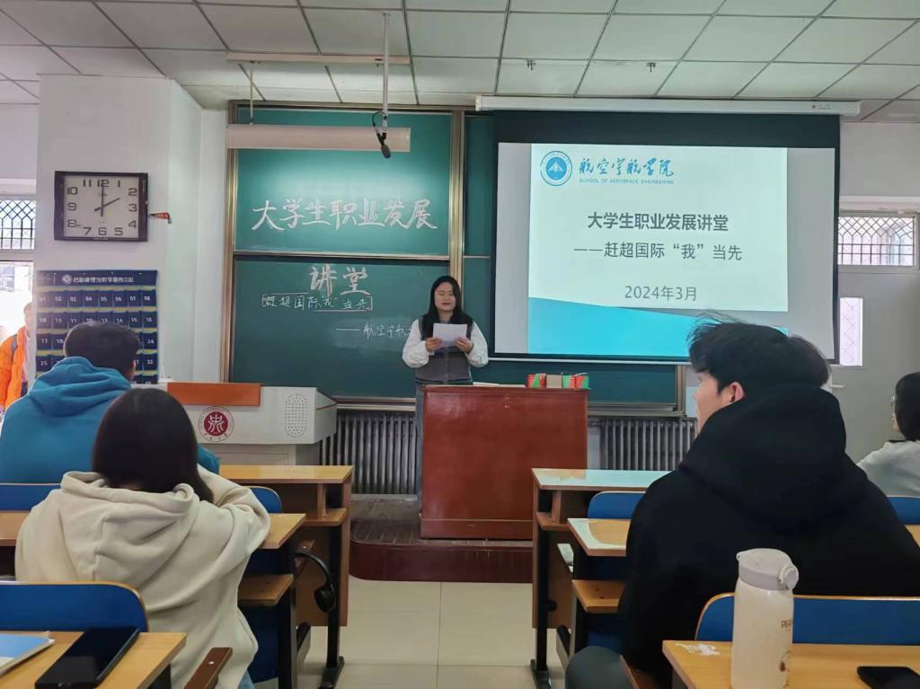 在11502H教室组织举办“赶超国际‘我’当先”——大学生职业发展讲堂,23180242班及23180243班全体同学到场参加,中航富士达科技有限公司董事长武向文应邀出席并主讲。