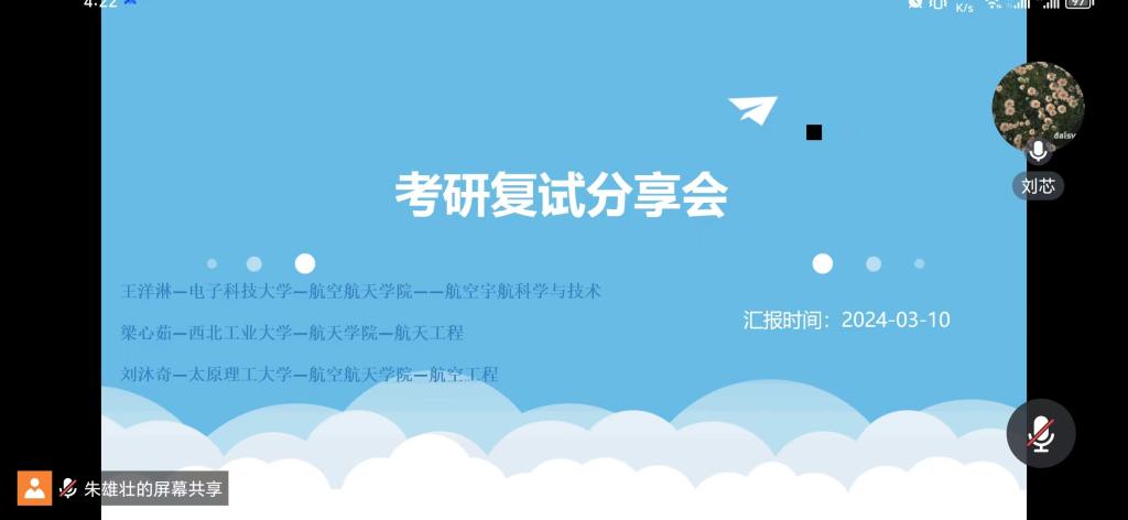 分享会上,大发彩票平台2023届毕业生代表——电子科技大学王洋淋、西北工业大学梁心茹、太原理工大学刘沐奇分别分享了自己的复试经验。他们回顾了自己的备考过程,从规划学习时间、选择复试科目、调整心态等方面讲述了自己的心得体会,以及克服复试过程中遇到的挑战和困难的成功经验等。