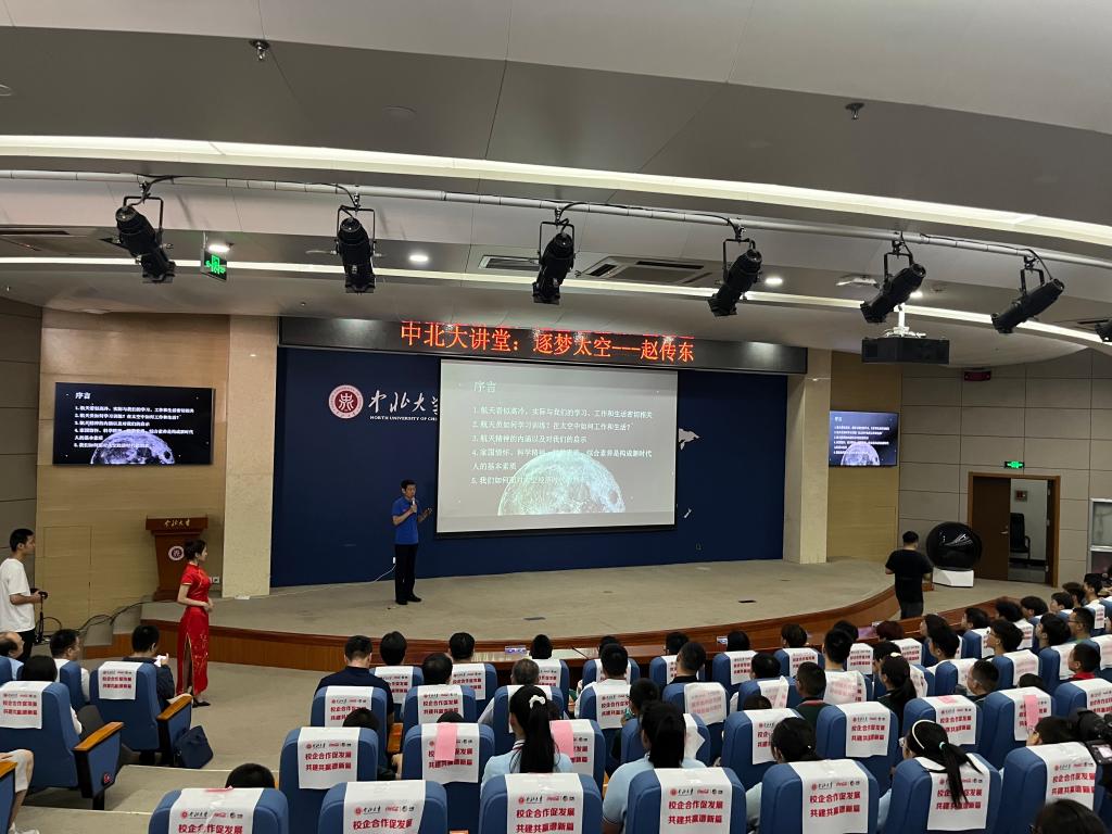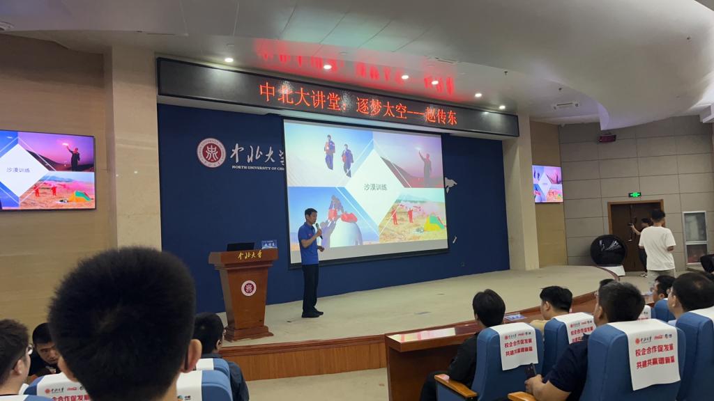 承办主题为“逐梦太空”的中北大讲堂。本次讲座邀请到了中国首批航天员,原空军一级飞行员——赵传东。