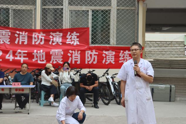 党委书记罗建国进行总结,希望同学们能提高对消防演练的重视程度,提高安全意识,掌握安全防范技能,能够真正学习到勾虎平医生和向远峰老师传授的知识,并对现场工作人员及同学们的参与表达感谢。