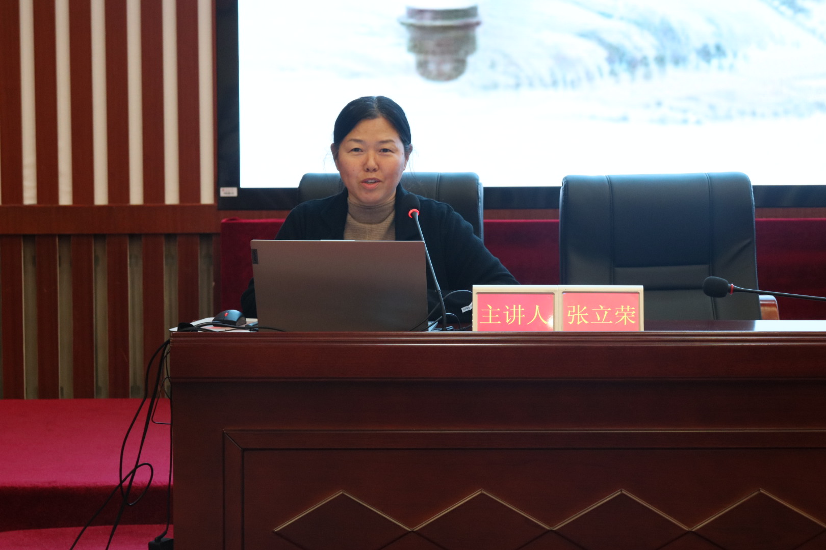 讲座伊始,张立荣教授以清代诗论家沈德潜 “诗者,天地之心也” 的经典论述为引,精准点明唐诗在中华文脉传承中的核心地位与精神价值。随后,她沿着历史脉络系统梳理唐诗发展历程:从初唐 “四杰” 开创的清新文风,到盛唐李白、杜甫等诗坛巨匠铸就的巅峰气象,再到中唐流派纷呈的多元格局,直至晚唐 “小李杜” 笔下的婉约余韵,为师生勾勒出一幅脉络清晰的唐诗发展全景图,帮助大家建立起对唐诗艺术演进的整体性认知。