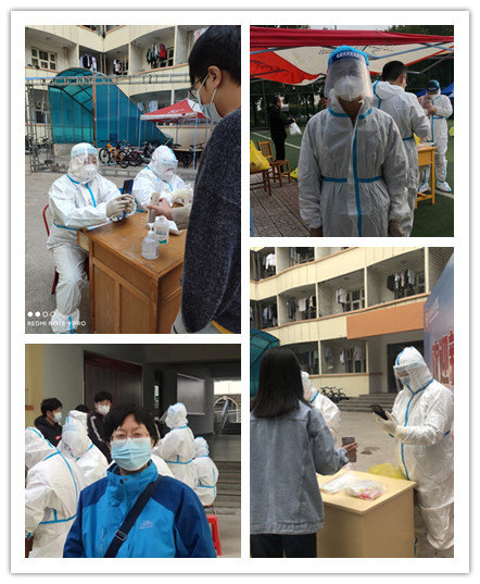 志愿力量,青春担当。现场工作井然有序的开展,同样离不开志愿者们的奉献。数十位教师志愿者积极投入到核酸检测信息采样、食堂分餐及送餐的岗位上,时刻不忘共产党人的初心与使命,用责任感和认真的工作态度与病毒赛跑。