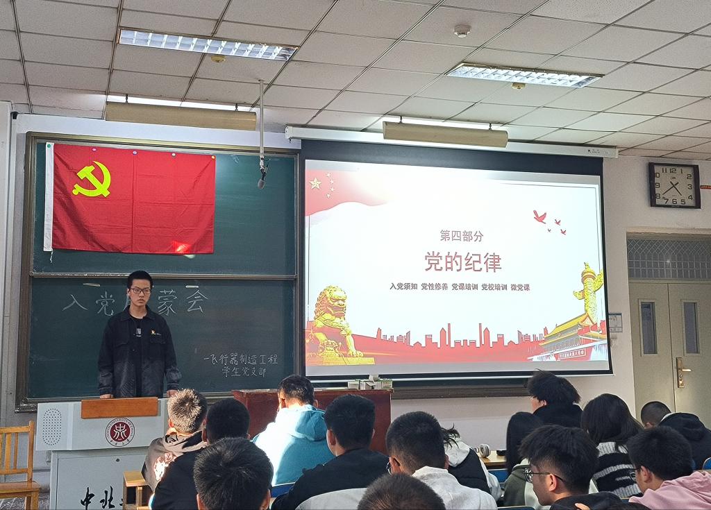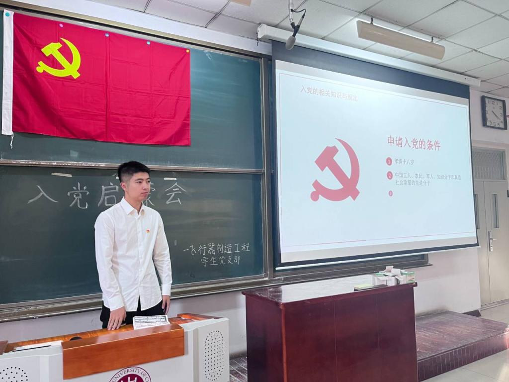 为使23级本科新生和研究生新生对中国共产党有基本的认知,增强入党积极性和主动性,飞行器制造工程学生党支部于2023年10月20日在11305教室中顺利举办了新生入党启蒙教育活动。