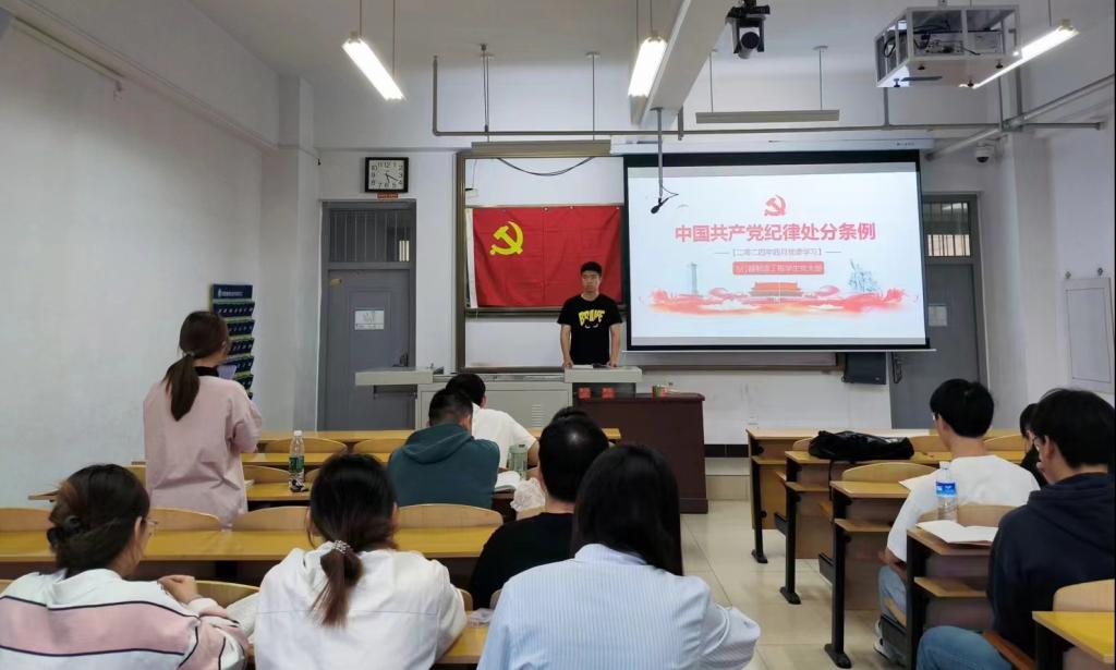 飞行器制造工程学生党支部于教室15108Z展开《中国共产党纪律处分条例》学习,会议由支部副书记刘晓澎主持。