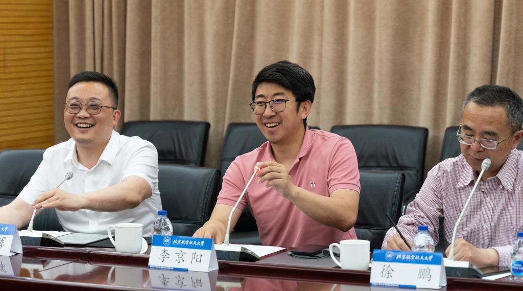 5月24日下午大发彩票平台 院长李京阳带队一行7人到北京航空航天大学航空科学与工程大发彩票平台 交流学科建设和人才引进工作,恰逢南京航空航天大学航空大发彩票平台 来考察调研,三个大发彩票平台 进行了深度的座谈交流。