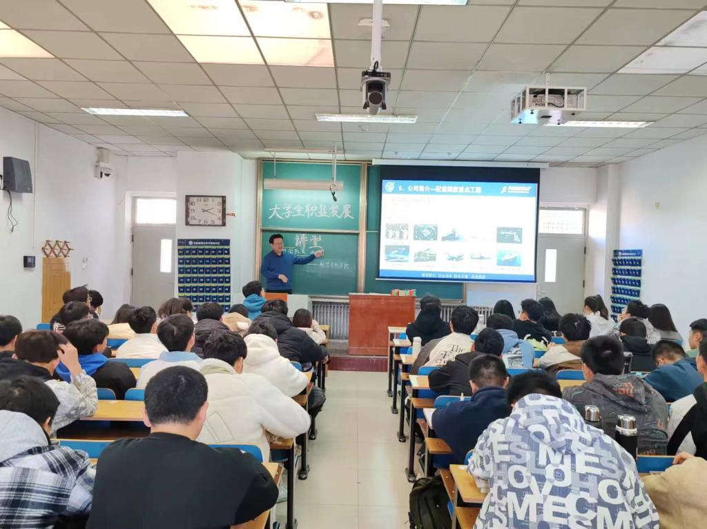在11502H教室组织举办“赶超国际‘我’当先”——大学生职业发展讲堂,23180242班及23180243班全体同学到场参加,中航富士达科技有限公司董事长武向文应邀出席并主讲。