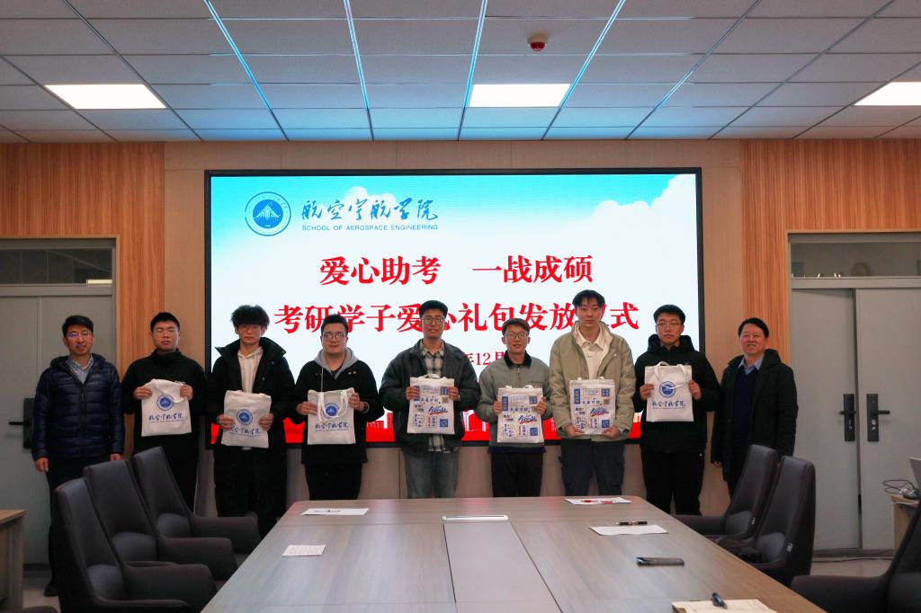 与此同时,爱心礼包发放仪式也在温馨进行,礼包内容丰富实用,承载着学院对学子的深情厚意和美好祝愿。罗书记和李院长亲自为考研学生代表发放礼包,并送上真挚祝福与鼓励。领取礼包的学生深受感动,表示将不负学院期望,以更饱满热情投入备考。